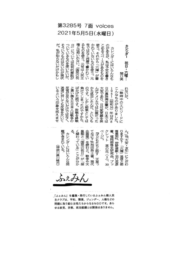 20210505・ふぇみん・カレンダー 祝日・六曜…
